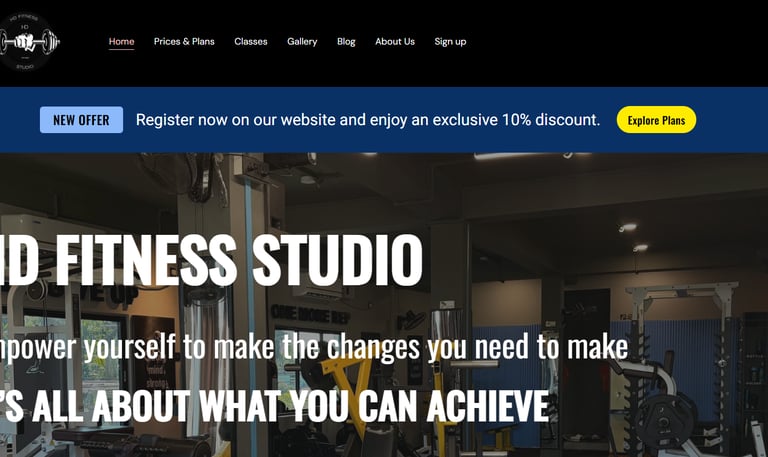 Custom Designed Website for a Gym in Silapathar, HD Fitness Studio, with inbuilt Booking feature along with AI Chatbot